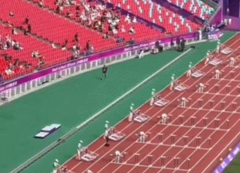 他们整齐划一收放跨栏