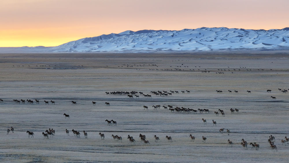 “看!藏野驴正在跟我们赛跑。”循着阿尔金山国家级自然保护区管理局巡护员尚鹏手指的方向,记者看见飞扬的尘土中,数百头藏野驴正在飞驰。