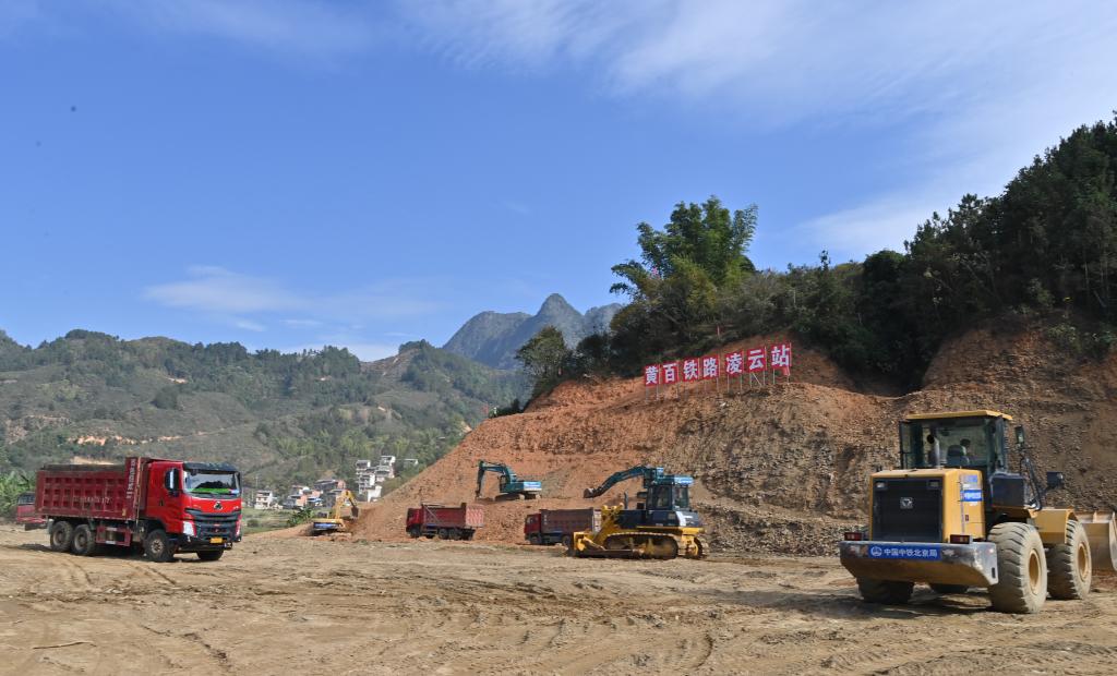 黄百铁路施工现场。新华社记者周华 摄