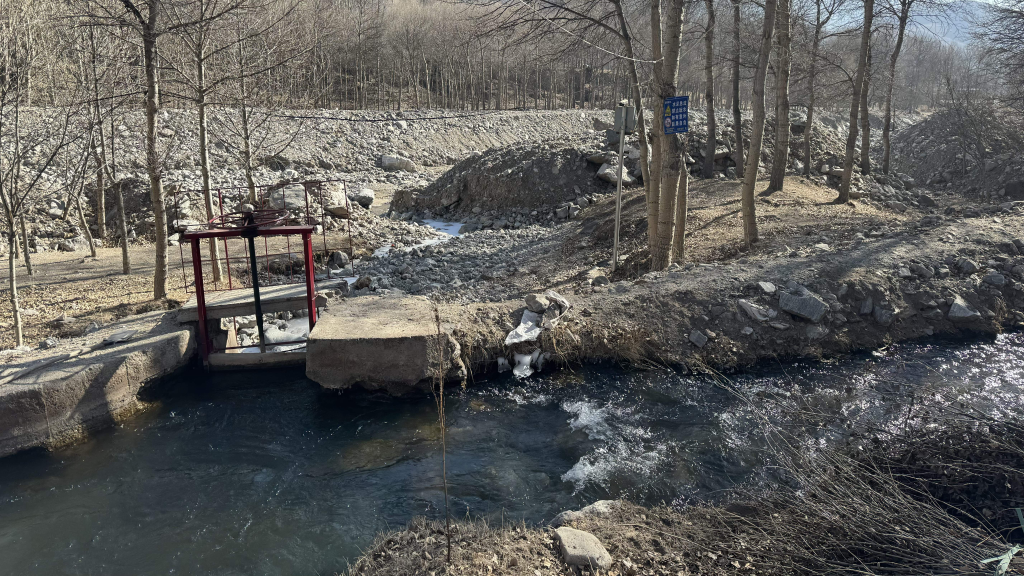 尕让河上的一处小水电引水渠闸门。图片上方为几乎干涸的尕让河河道,下方为水电站引水渠。新华社记者 徐汉摄