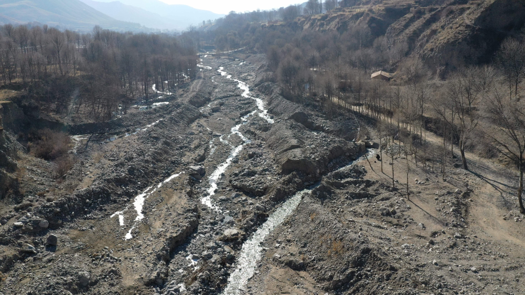 被大范围挖开的尕让河河道。新华社记者 李占轶摄