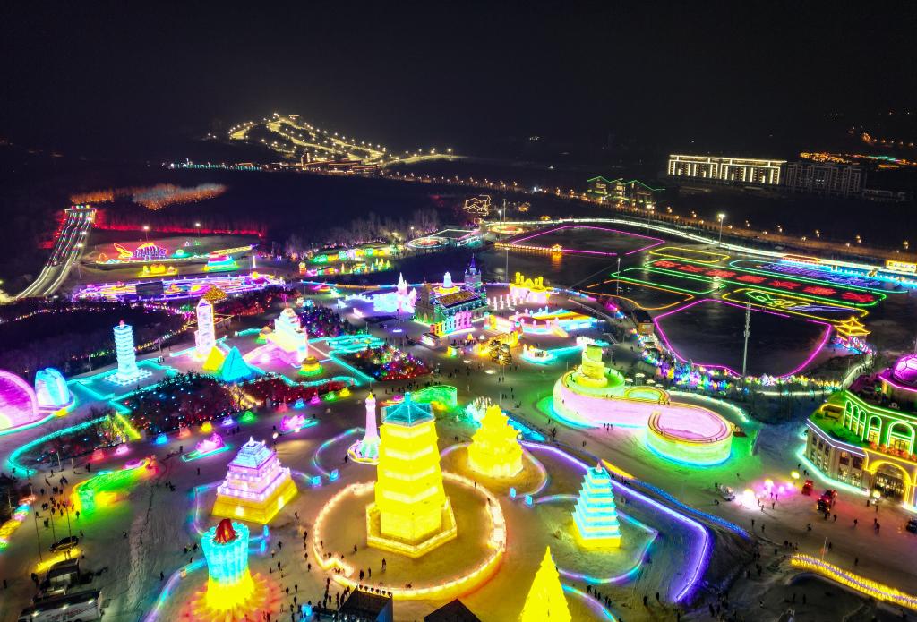 这是12月12日拍摄的长春冰雪新天地(无人机照片)。新华社记者 颜麟蕴 摄