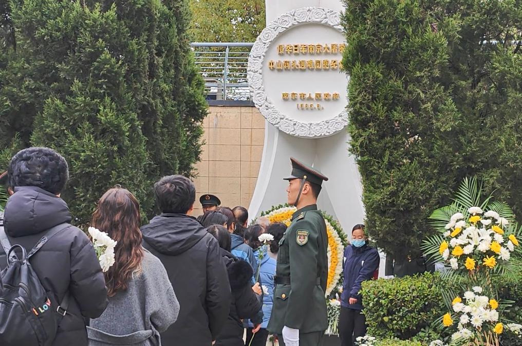 12月13日,南京各界群众在中山码头丛葬地参加悼念活动。新华社记者刘宇轩 摄
