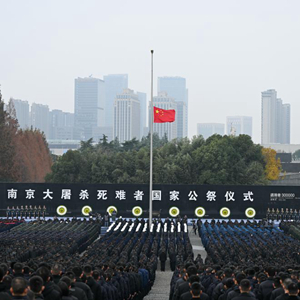 10时整,南京大屠杀死难者国家公祭仪式在侵华日军南京大屠杀遇难同胞纪念馆的公祭广场上隆重举行。国旗半降,哀乐低回,以国之名,公祭殇难。