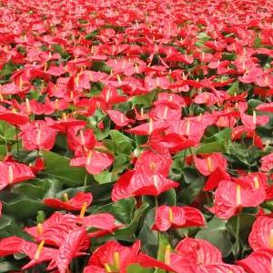 商河县的花卉温室大棚里,红掌争相绽放。新华社记者陈国峰 摄