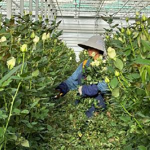 脱去厚重的外套,张小红换上轻便的工作服,戴好手套和帽子,拿起大剪刀,开始了一天的剪花工作。只见她走进幽深窄密的绿色长廊,直到看不见人影。少许时刻,她便抱着一大捧玫瑰走了出来,新鲜的露水从娇嫩的花瓣上滴落。平板车里盛满清水,她和其他工人们一起,将新鲜采摘的玫瑰用网纱细心地裹好,然后放置水中。再过不久,这些玫瑰将被运往全国各地甚至海外,为人们带来愉悦和享受。