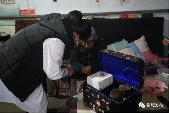 “这么冷的天儿,路上又不好走,还到家里来给我看病,真是太感谢了!”70多岁高龄的李奶奶,因小儿麻痹症达到二级伤残,长期卧病在家、行动不便。“严寒天气容易加剧肢体疼痛,对残疾人而言更是极大的威胁”,王医生搀扶着老人从床上坐起,娴熟打开诊疗箱,拿出医疗设备进行血压、心肺等常规检查,更新记录健康档案,并细心叮嘱消炎止疼药物的用量用法。