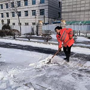 接到雪情预警通知后,在岗备勤的马秀荣马上投入“战斗”,奋战在除雪一线,带领环卫同事清扫出一条条“安全路”。