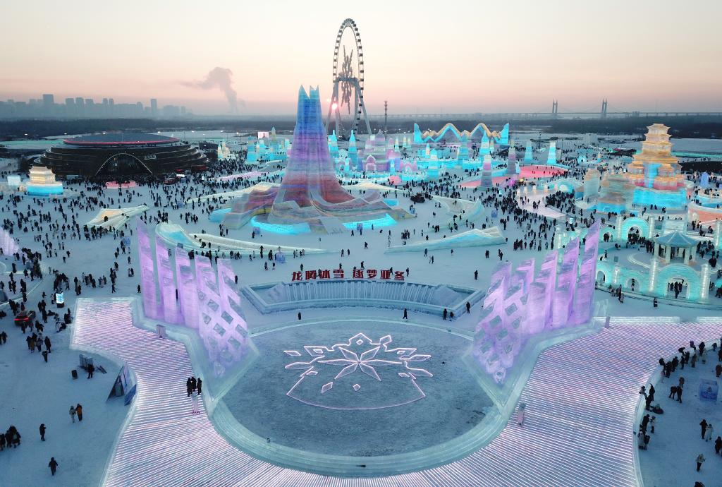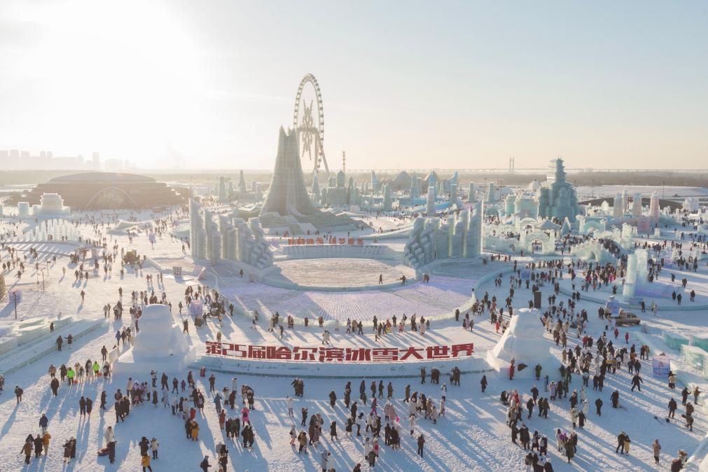 12月18日,第二十五届哈尔滨冰雪大世界正式开园,园区内全部娱乐设施已就位,欢迎世界各地游客共同开启一场“冰雪盛宴”。本届冰雪大世界园区总体规划面积81万平方米,为历届规模最大,共使用25万立方米的冰和雪打造千余个冰雪景观。
