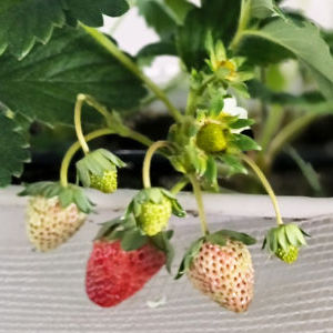 宁夏泾源县香水镇卡子村温棚里的草莓已经挂果。新华社发