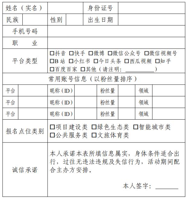 附件:“雄安欢迎您——全国优秀网红大V雄安行”活动报名表