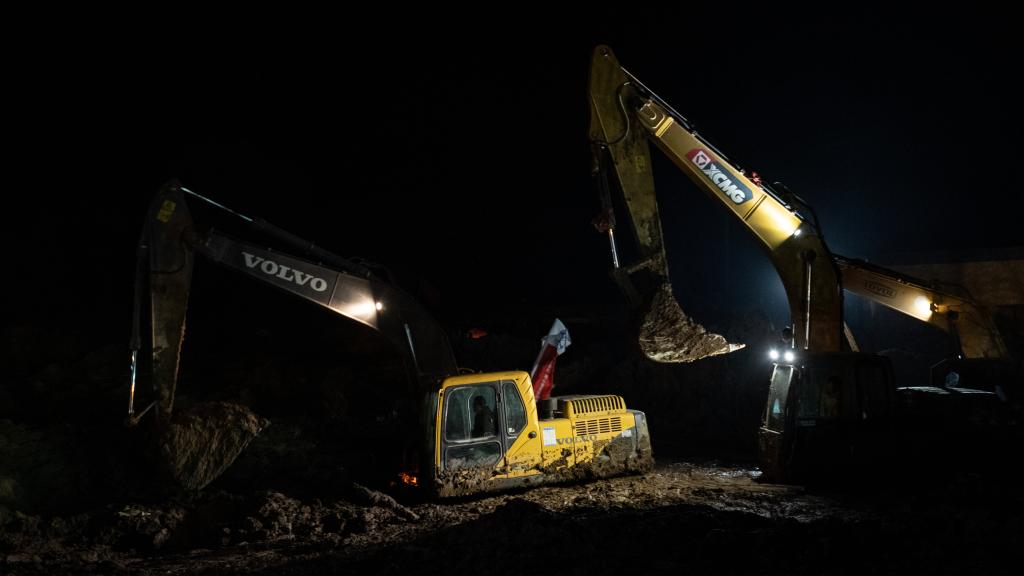 19日凌晨,积石山6.2级地震在中川乡引发砂涌。救援工作从当日凌晨开始,十几台大型机械共同作业,石块、土堆被一层层清理。几座大型探照灯照亮了救援现场的角角落落,救援人员一刻不停。