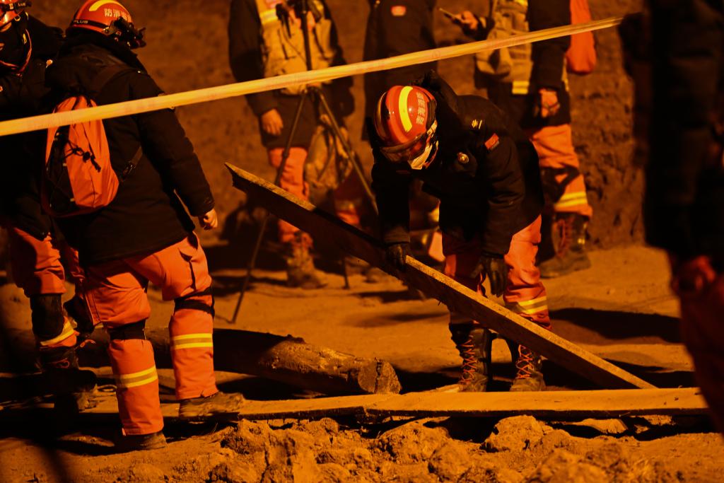 12月19日晚,救援人员在青海省海东市民和回族土族自治县中川乡金田村开展救援工作。新华社记者 张龙 摄