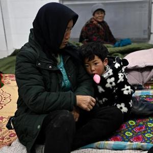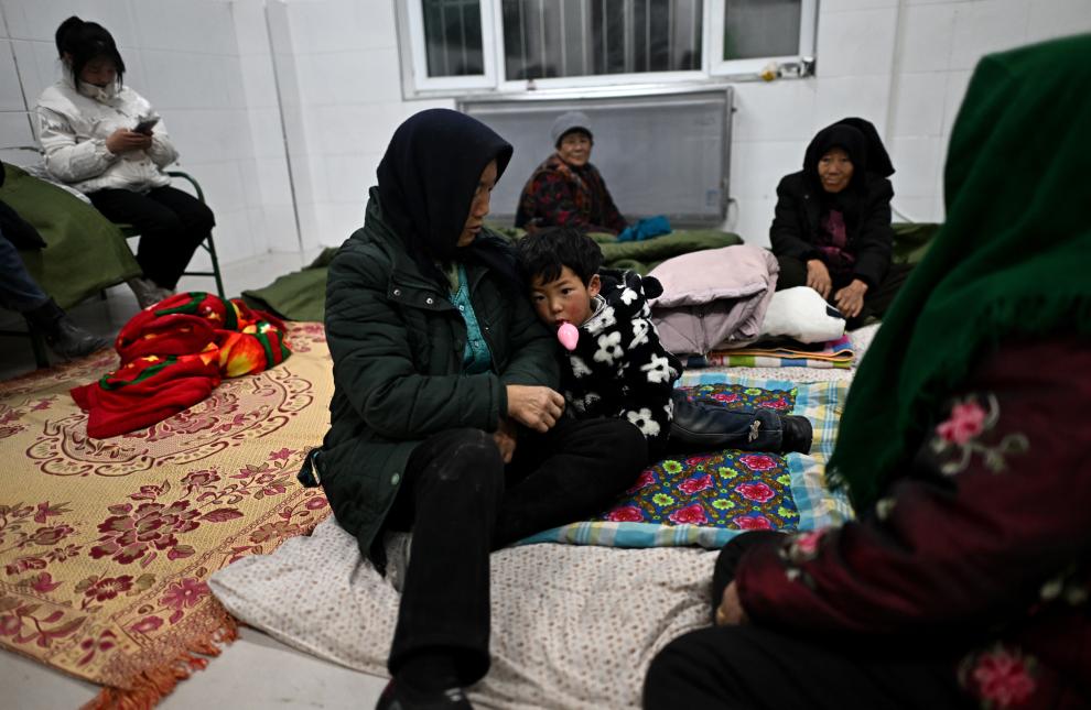 12月19日,当地民众在民和县中川乡美一小学的集中安置点休息。新华社记者 张宏祥 摄