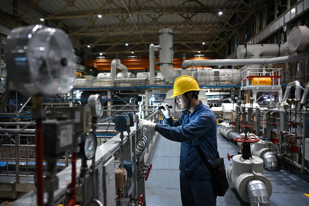12月18日,工作人员在内蒙古呼伦贝尔市鄂温克族自治旗华能伊敏煤电公司伊敏电厂开展巡检工作。新华社记者贝赫 摄