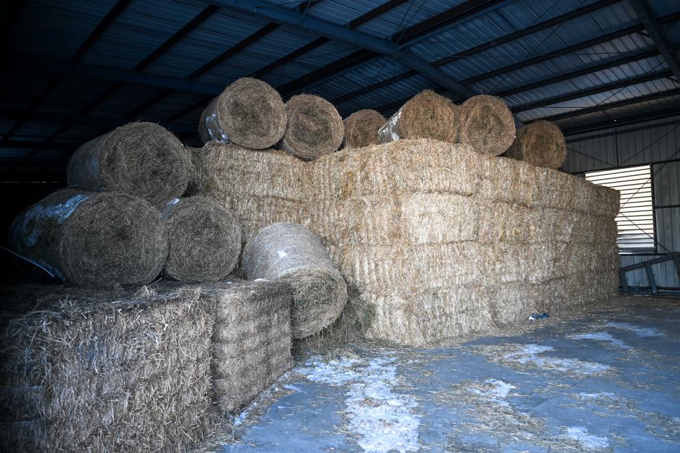 12月19日在内蒙古呼伦贝尔市鄂温克族自治旗中心饲草储备库拍摄的越冬牧草。新华社记者贝赫 摄