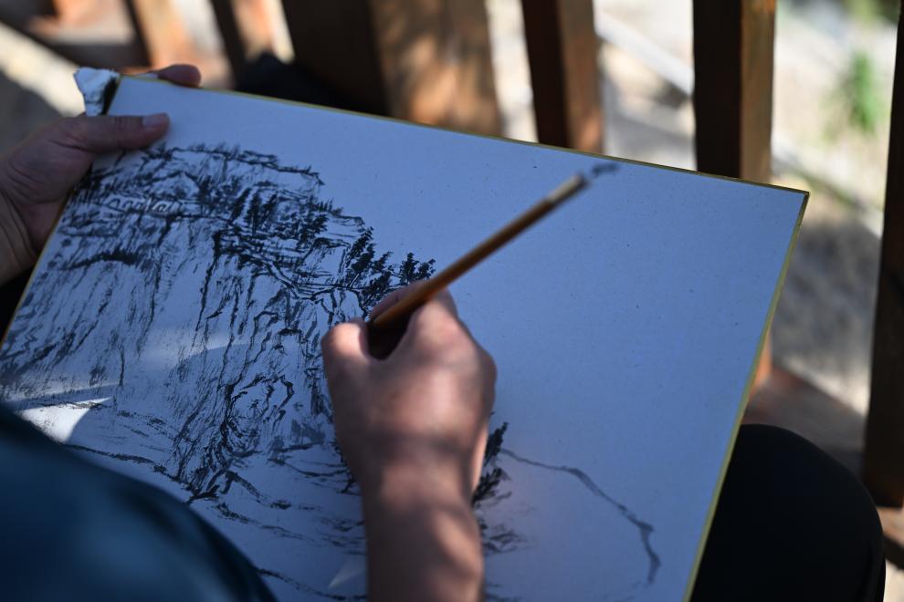 8月26日,游客在黄河老牛湾的一家民宿用餐。
