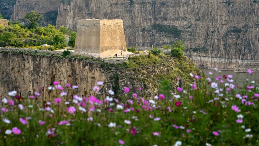 这是在山西省与内蒙古自治区交界处的黄河老牛湾拍摄的明长城遗址(8月23日摄)。