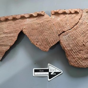 “前几年,我们在遗址各处也都陆续发现过类似残片,由于破碎严重,难以判断用处,今年发现的器形较大较完整,形制与后期陶瓦类似,又比同时期的陶器薄,我们推测这些‘瓦形器’应该是房顶建筑用物。”魏兴涛说。