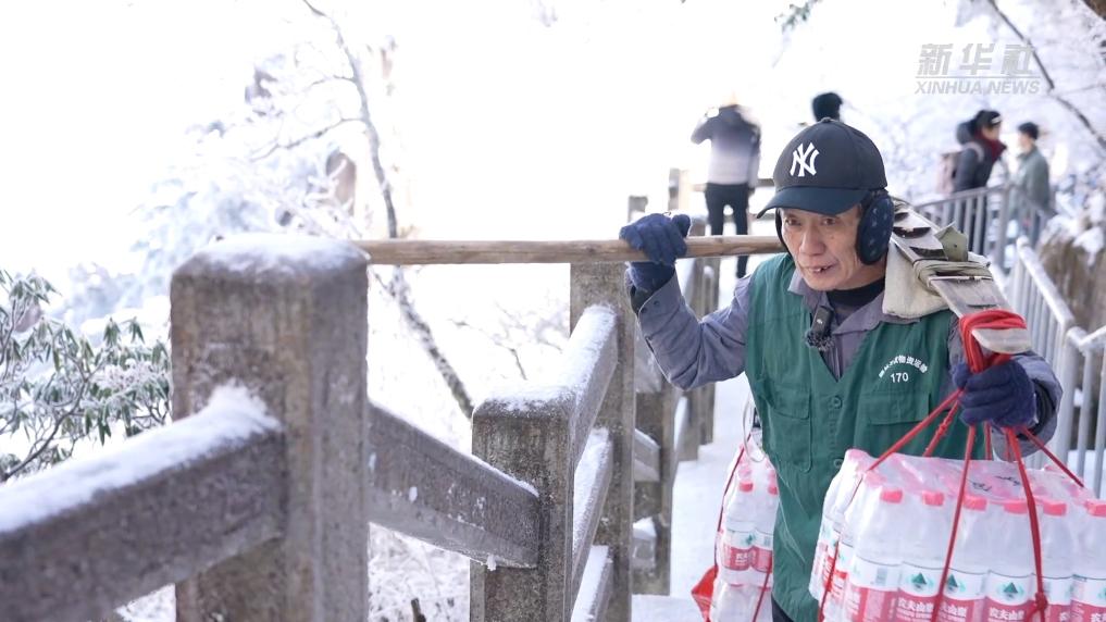 近日,世界文化与自然遗产黄山最低气温降到零下十摄氏度以下。为了保护这一世界遗产,同时在寒潮降雪天气中保障游客安全,黄山上,工作人员们正日夜奋战,铲冰除雪,确保物资供应充足、景区环境良好和旅游秩序井然。