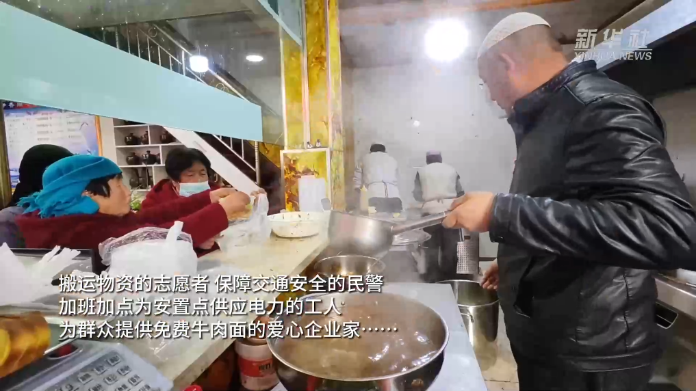 搬运物资的志愿者、保障交通安全的民警、加班加点为安置点供应电力的工人、为群众提供免费牛肉面的爱心企业家……