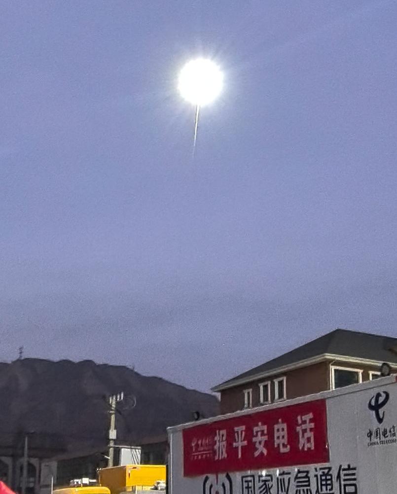 该团队队员王胜旺介绍,听闻积石山灾情,他们第一时间联系有关部门,获准后,他们跨越2000多公里,于19日19时许抵达大河村,在夜幕中升起这款“光明神器”。