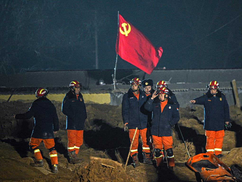 12月21日,救援队员在青海省海东市民和回族土族自治县中川乡金田村现场救援。