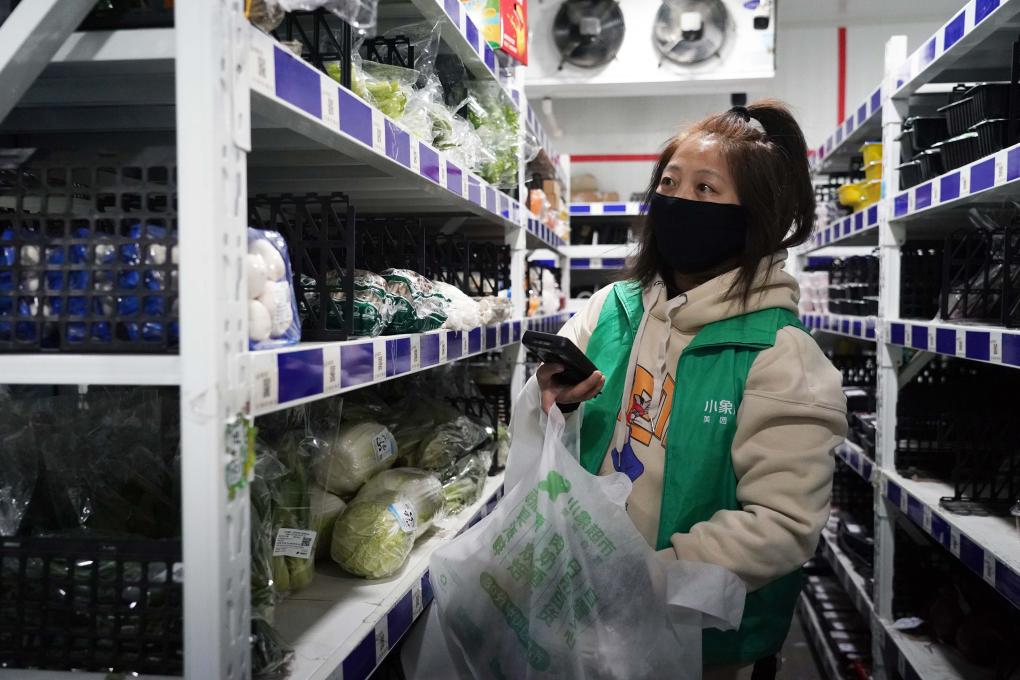 12月20日,在一家本地零售平台位于北京市顺义区的前置仓,分拣员进行拣货。 新华社记者任超 摄