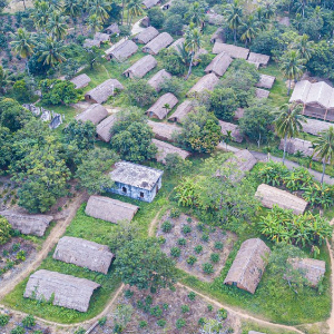 海南省东方市江边乡白查村船型屋景色(12月5日摄,无人机照片)。新华社记者 蒲晓旭 摄