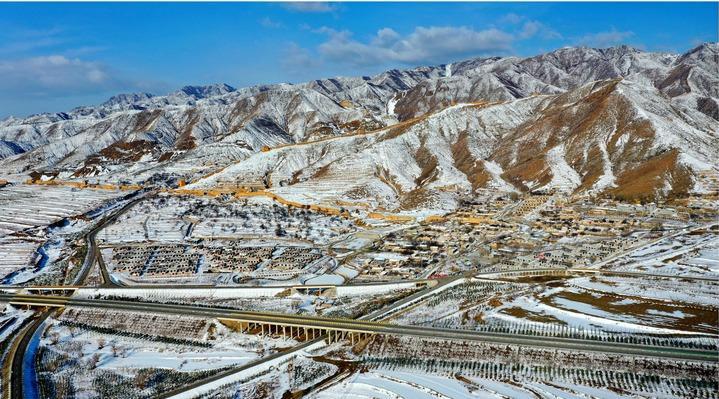 雪后山西省大同市天镇县李二口村周边新貌(无人机照片,2022年3月20日摄)。新华社发(袁建琴摄)