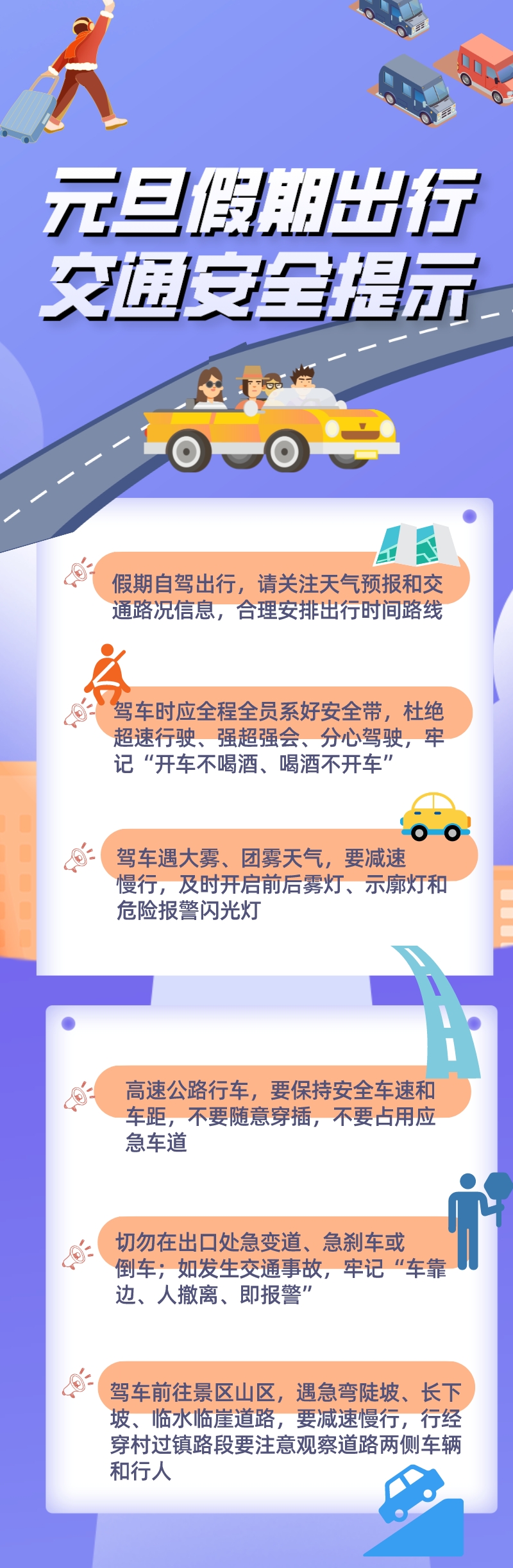 2024年元旦假期即将来临,在这个传统的节日里,很多人都会选择亲友欢聚、外出旅游、放松身心……如何安全又健康地享受假期?下面这些提示一起了解下。