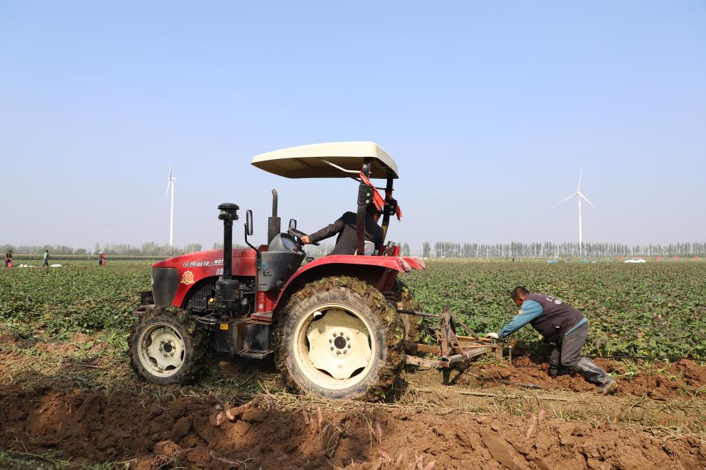 怀仁镇河西新村党支部领办的合作社收获成熟的甘薯。新华社记者王志 摄