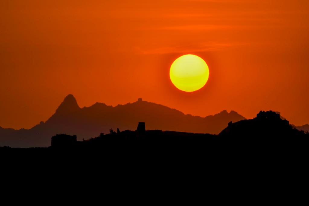 金山岭长城的夏天充满生机,树木葱郁,凉风习习。降雨过后,金山岭长城的温度和湿度有一定几率形成云海。在一个雨后的清晨,天蒙蒙亮,我站在家门口,看到山谷里的水蒸气化作雾气向空中升起。我背起相机,在天空刚刚露出鱼肚白时到达合适的拍摄位置。古朴的金山岭长城在碧绿的山间若隐若现,像一条巨龙横卧在崇山峻岭之上。云海翻腾,在金山岭长城与山间游动,蔚为壮观。