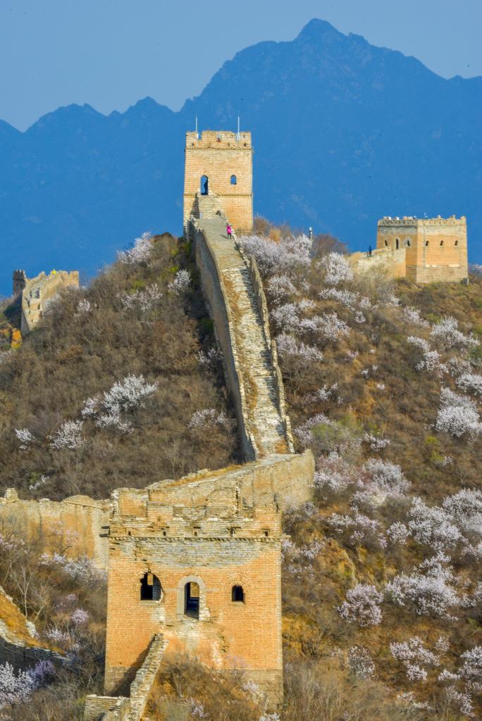 每年清明前后,金山岭长城两侧十万亩杏花竞相开放,金山岭长城迎来拍摄杏花的最佳时间。在一个清晨,我爬上索道梁顶,一朵朵绽放的杏花白如雪、粉如霞,在阳光的照耀下,格外娇艳动人,与沧桑古老的长城交相辉映,成为充满希望的春的画卷。