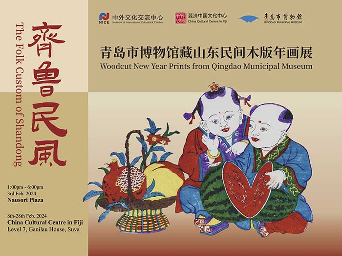 “齐鲁民风-青岛博物馆馆藏木版年画展”由斐济中国文化中心、中外文化交流中心、青岛市博物馆联合主办,2月15日之后,将在斐济中国文化中心持续展出。
