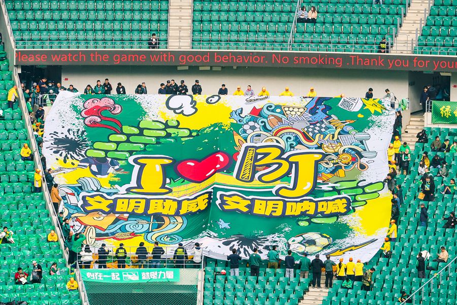 11月2号下午,北京工人体育场举行2024中超联赛北京工体的最后一个主场,在开赛前的心力量球迷看台区,一幅幅TIFO绘画作品依次展示,这些作品是由首都文明办主办的“我爱北京”文明观赛TIFO大赛的获奖作品。据了解,这也是首次在工体球迷看台展示文明观赛获奖作品,呼吁更多的人文明观赛。