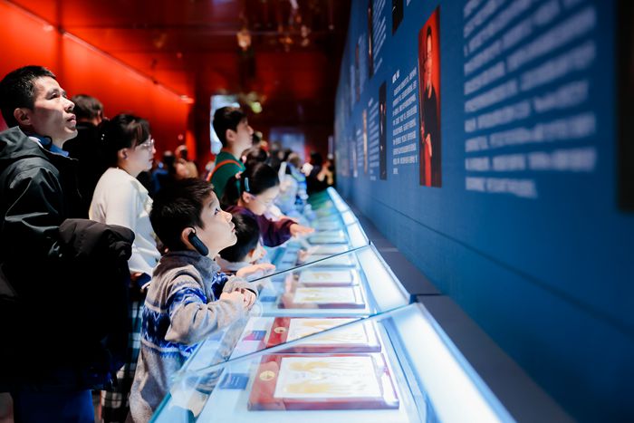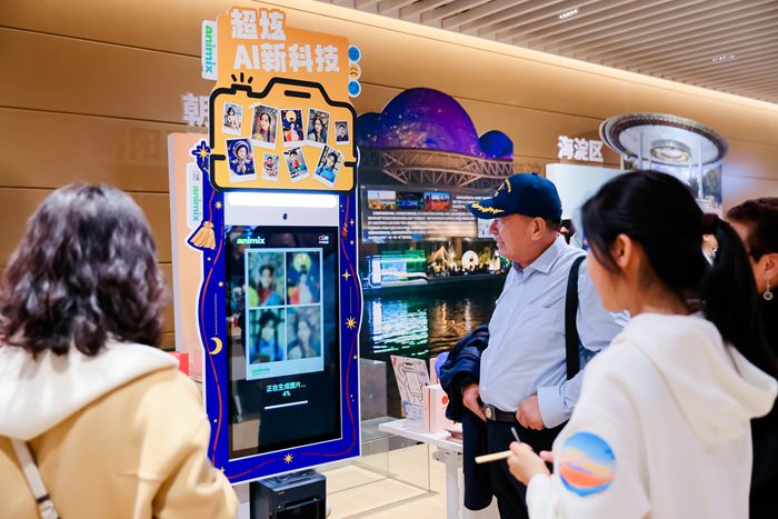 随后,榜样模范和文明家庭代表走进北京城市图书馆。超大的图书馆阅览室令人印象深刻、元宇宙体验馆充满人工智能新科技……大家还一同参观了“非凡京味”特色展。各式各样的北京文创潮品令观众一饱眼福,很多人还体验了一次体感设备“隔空”试穿旗袍,与AI进行交互对答等趣味互动,沉浸式领略京味非遗的现代演变。