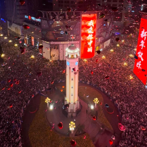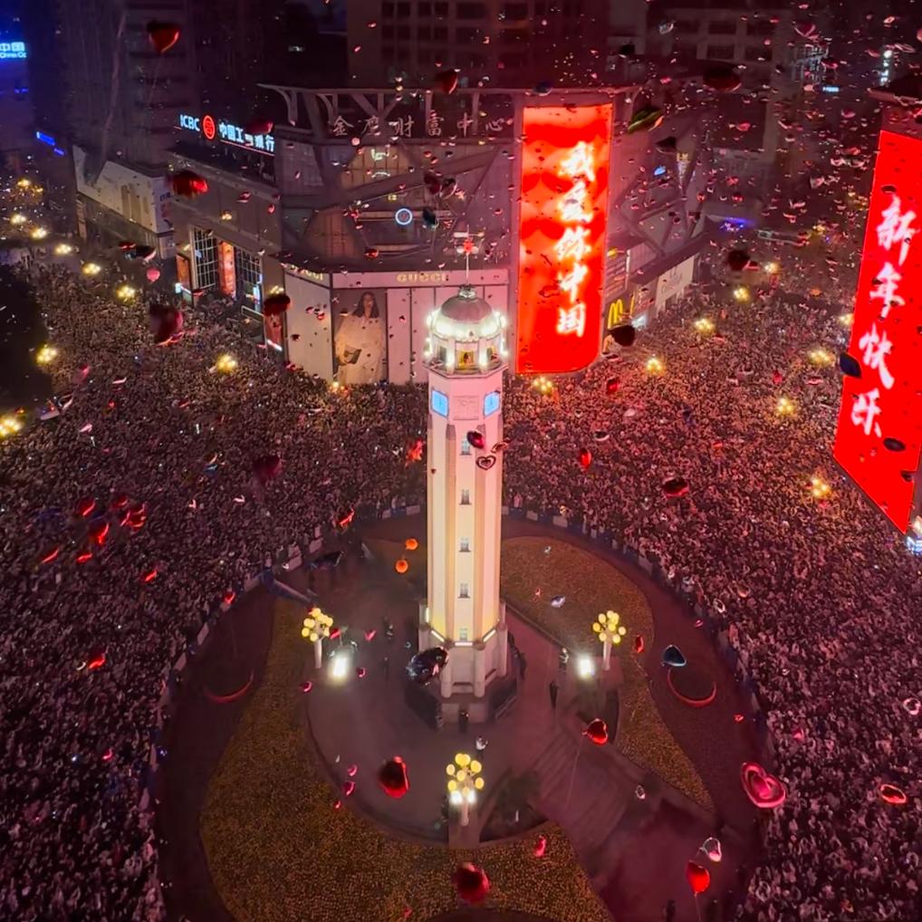 新华社重庆1月1日电(记者陈青冰)2023年的最后一个夜晚,在重庆,人们纷纷涌入解放碑步行街,等待零点钟声敲响。