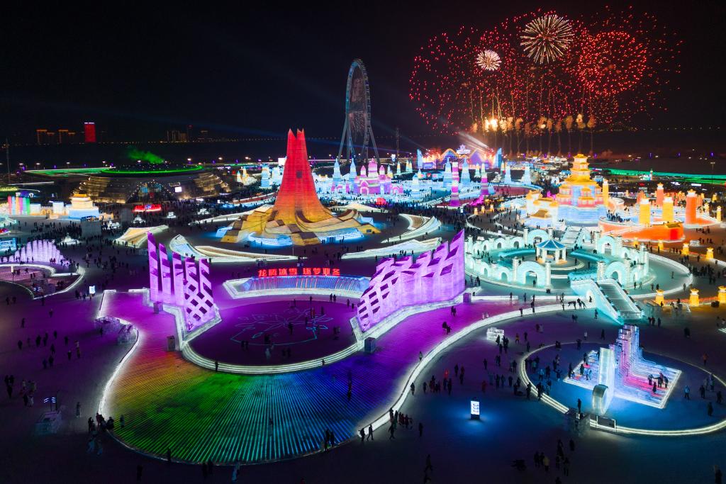 1月5日晚,在漫天烟火的照耀下、在欢快悠扬的歌声中、在此起彼伏的欢呼声中,第40届中国·哈尔滨国际冰雪节在哈尔滨冰雪大世界启幕,来自四面八方的游客共同领略这场冰雪盛宴。