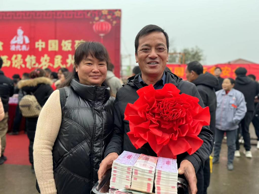 听到主持人念:“‘种粮状元’李腊秀,313590元!”大伙的欢呼声更加热烈。