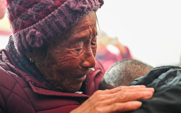 我躲在人群中,不停地按动快门。这一刻,史八妹看着年过六十的儿子,眼泪从皱褶中流下……