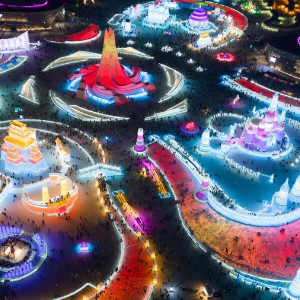 置身哈尔滨冰雪大世界,感受着25万立方米的冰和雪,在81万平方米的空地上创造出的奇迹,近万名能工巧匠不间断地精雕细琢,这是大自然的馈赠,更是力与美的结合。白天,它是晶莹光洁的冰雪奇缘;夜晚,它是闪耀烂漫的琉璃仙境。