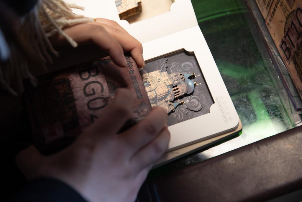“这个街区的建筑很有特点,既有生活气息又有艺术风韵。”来自北京的游客张超帆在文创店买了一本哈尔滨特色的纸雕纪念册,加盖上述说城市历史的专属印记。