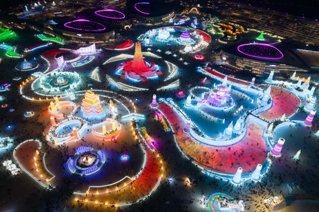 2023年12月31日,哈尔滨冰雪大世界园区夜景。新华社记者张涛摄