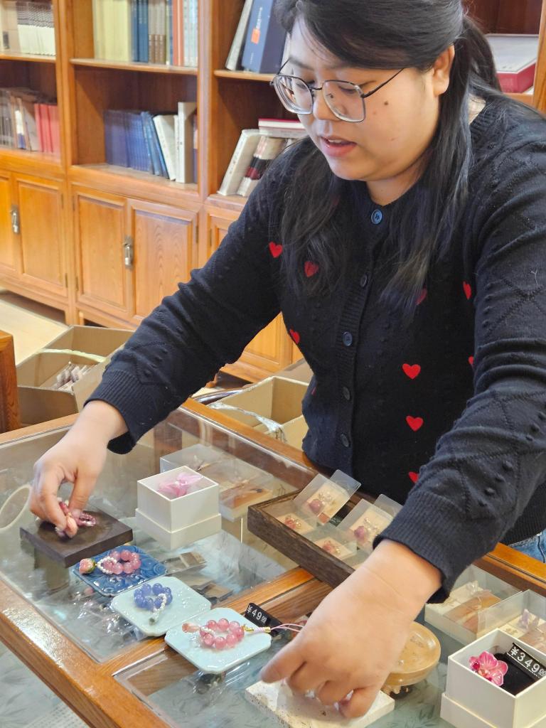 蝴蝶形状的戒指,点缀封存鲜花的手串、手捻、耳坠,搭配不同颜色的天然石……最近,辽宁省博物馆“簪花”系列手作饰品凭借超高的颜值、精巧的设计和独特的内涵“火了出圈”,不少游客起大早来排队购买,但仍“一串难求”。