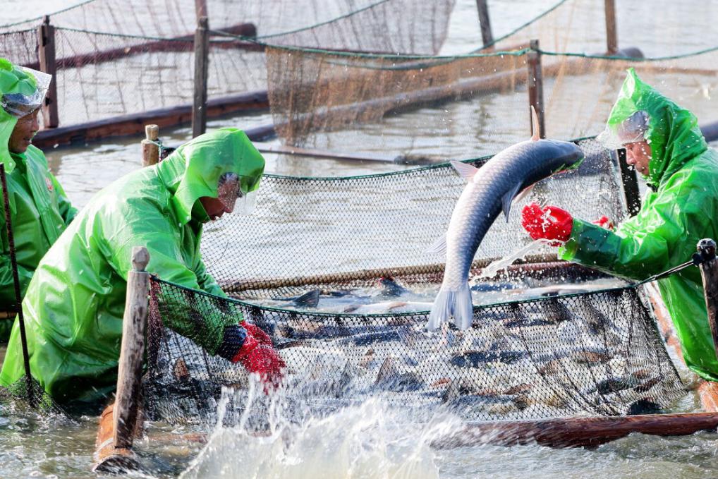 “个头这么大的鱼没见过几条,今年肯定是个丰收年!”渔民翁建兴说,青鱼是江南地区许多居民家里必备的“年味”,因其丰收时间临近春节,开捕活动也成了当地重要年俗。