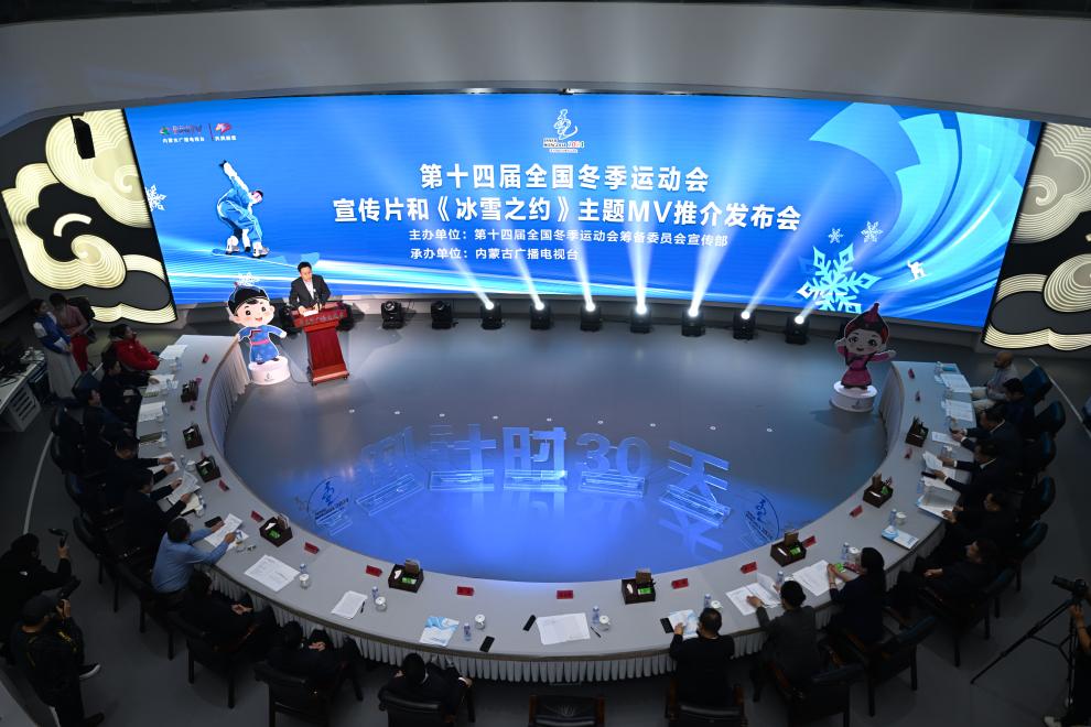 这是1月17日拍摄的第十四届全国冬季运动会宣传片和《冰雪之约》主题MV推介发布会现场。新华社记者 贝赫 摄
