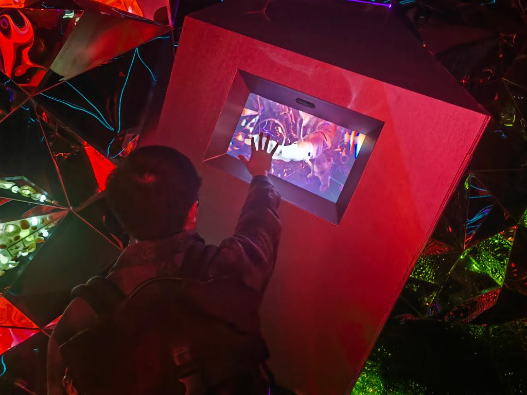 1月16日,一位观众在“三体沉浸式艺术展”上体验互动装置。新华社记者 董小红 摄