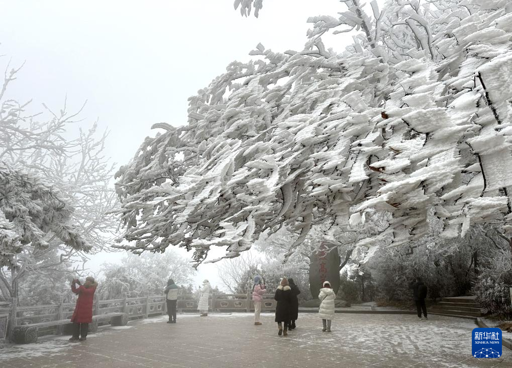 1月19日,游人在江苏连云港市花果山玉女峰观赏雾凇美景(手机照片)。新华社发(王春摄)