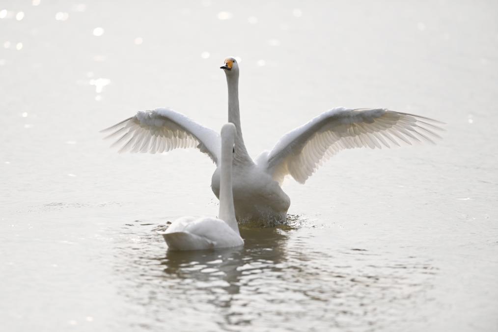 据了解,随着天气进一步转冷,三河口的大天鹅数量预计还会增加。